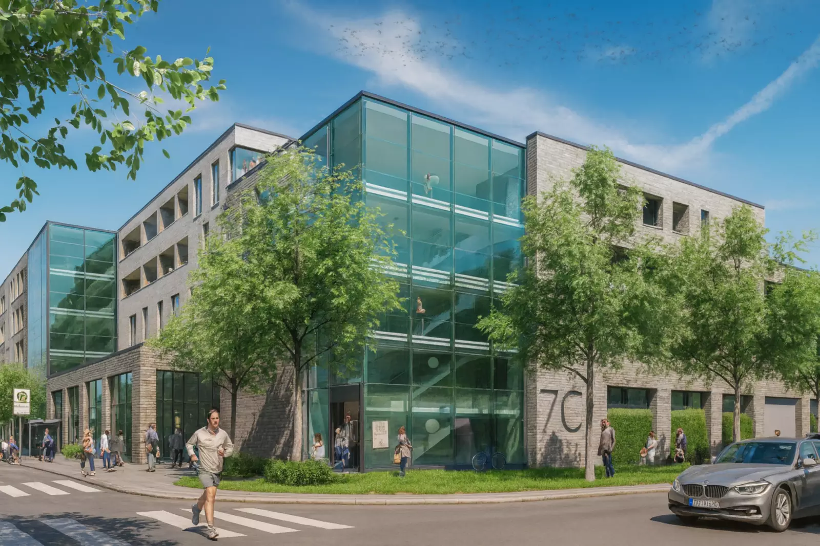 Unsere Studie untersucht das grundsätzliche Potential dieses Standortes, der derzeit lediglich mit einem eingeschoßigen Filialgebäude bebaut ist. Städtebaulich wichtige Faktoren für die Einfügung wie Höhenentwicklung, Geschossigkeit und Fluchtlinien werden aufgegriffen und eine standortgerechte Blockrandbebauung entwickelt. Über die rückwärtige vorgeschlagene kammartige Bebauungsstruktur, wird es möglich, eine wirtschaftliche Grundstücksausnutzung zu erreichen und zugleich gut ausgerichtete Wohnflächen.